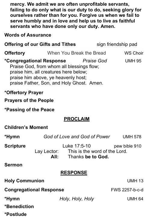 - Saturday Service